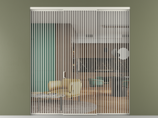 Во всех алюминиевых перегородках, независимо от типа установки, используется компланарный раздвижной механизм, благодаря которому декоративная крышка и полотно находятся в одной плоскости.