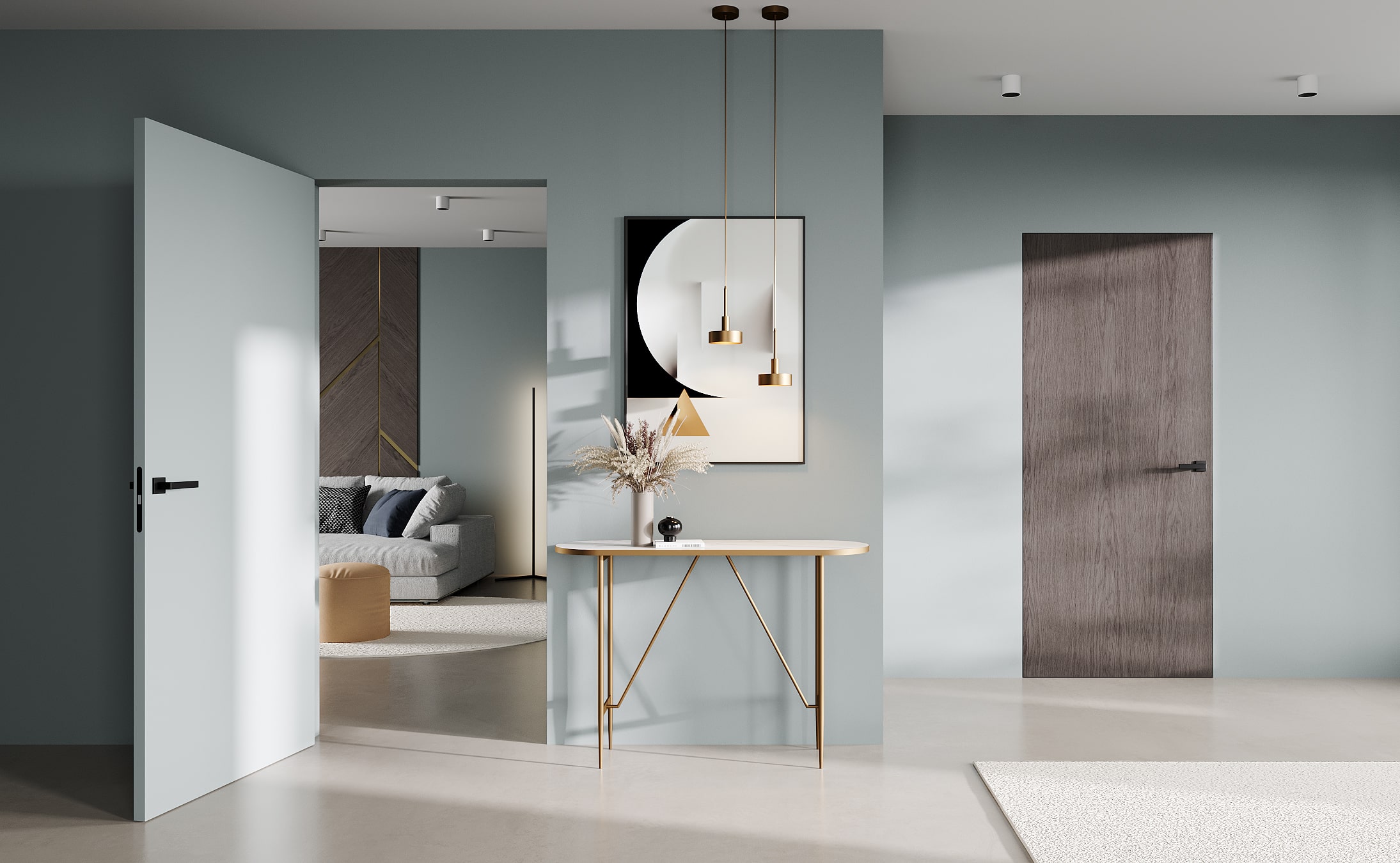 Planum — большие плоскости и безупречно выполненное покрытие максимально раскрывают красоту выбранной отделки на полотне. Двери Planum могут выступать как самодостаточным интерьерным решением, так и дополнением к уже существующим коллекциям, а также они идеально сочетаются с гладкими стеновыми панелями Волховец.