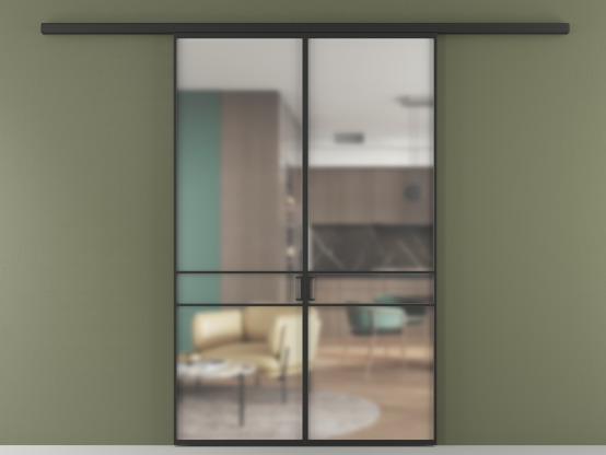 Во всех алюминиевых перегородках, независимо от типа установки, используется компланарный раздвижной механизм, благодаря которому декоративная крышка и полотно находятся в одной плоскости.