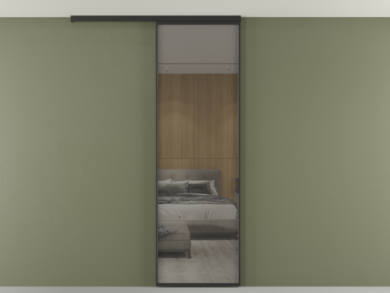 Во всех алюминиевых перегородках, независимо от типа установки, используется компланарный раздвижной механизм, благодаря которому декоративная крышка и полотно находятся в одной плоскости.