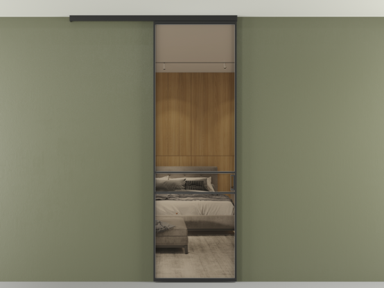 Во всех алюминиевых перегородках, независимо от типа установки, используется компланарный раздвижной механизм, благодаря которому декоративная крышка и полотно находятся в одной плоскости.
