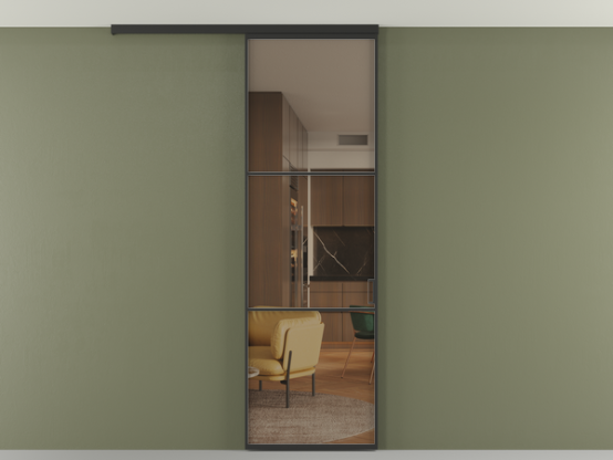 Во всех алюминиевых перегородках, независимо от типа установки, используется компланарный раздвижной механизм, благодаря которому декоративная крышка и полотно находятся в одной плоскости.