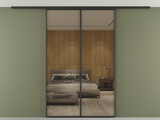 Во всех алюминиевых перегородках, независимо от типа установки, используется компланарный раздвижной механизм, благодаря которому декоративная крышка и полотно находятся в одной плоскости.
