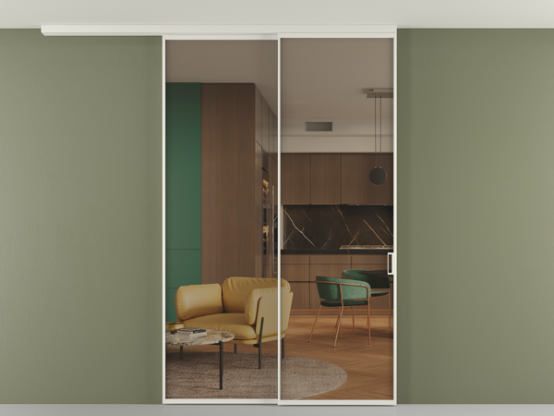 Во всех алюминиевых перегородках, независимо от типа установки, используется компланарный раздвижной механизм, благодаря которому декоративная крышка и полотно находятся в одной плоскости.