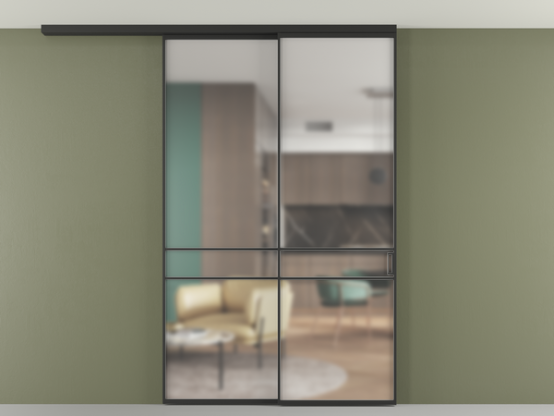 Во всех алюминиевых перегородках, независимо от типа установки, используется компланарный раздвижной механизм, благодаря которому декоративная крышка и полотно находятся в одной плоскости.