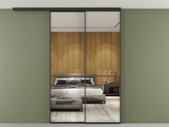 Во всех алюминиевых перегородках, независимо от типа установки, используется компланарный раздвижной механизм, благодаря которому декоративная крышка и полотно находятся в одной плоскости.
