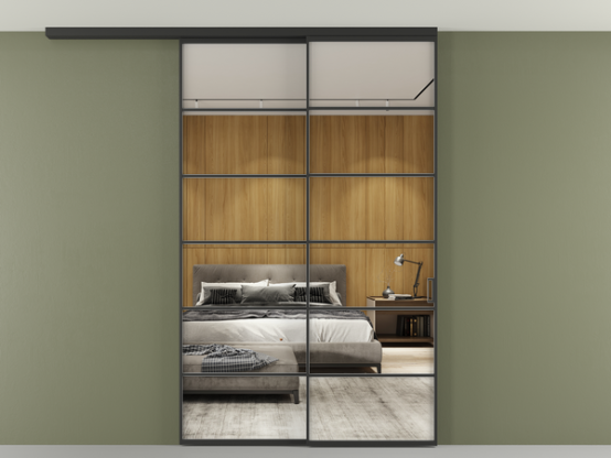 Во всех алюминиевых перегородках, независимо от типа установки, используется компланарный раздвижной механизм, благодаря которому декоративная крышка и полотно находятся в одной плоскости.