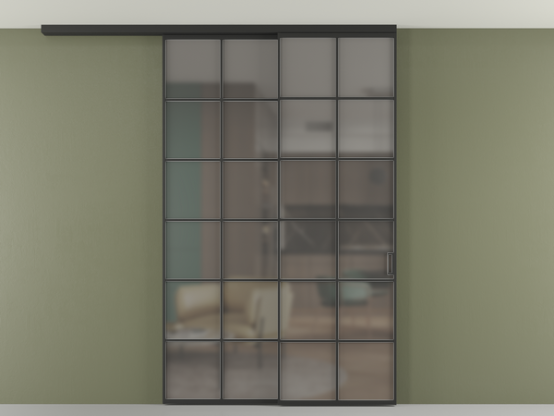 Во всех алюминиевых перегородках, независимо от типа установки, используется компланарный раздвижной механизм, благодаря которому декоративная крышка и полотно находятся в одной плоскости.