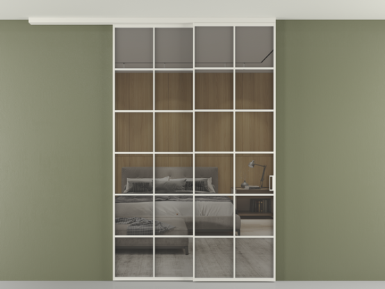 Во всех алюминиевых перегородках, независимо от типа установки, используется компланарный раздвижной механизм, благодаря которому декоративная крышка и полотно находятся в одной плоскости.