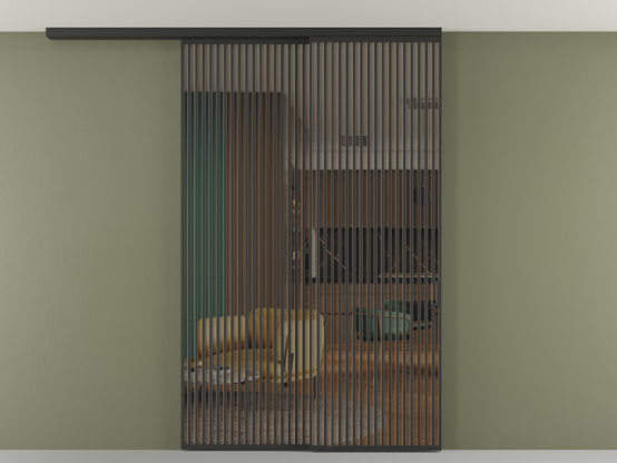 Во всех алюминиевых перегородках, независимо от типа установки, используется компланарный раздвижной механизм, благодаря которому декоративная крышка и полотно находятся в одной плоскости.