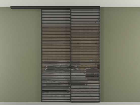 Во всех алюминиевых перегородках, независимо от типа установки, используется компланарный раздвижной механизм, благодаря которому декоративная крышка и полотно находятся в одной плоскости.
