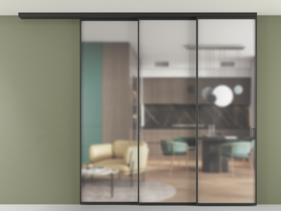 Во всех алюминиевых перегородках, независимо от типа установки, используется компланарный раздвижной механизм, благодаря которому декоративная крышка и полотно находятся в одной плоскости.