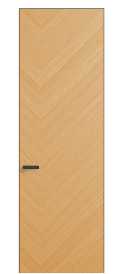 Полотно Rift в скрытом алюминиевом коробе становится полноценным элементом декора. В коллекции представлено 9 моделей дверей в высоте до 3 метров. Рисунок раскладки шпона варьируется от простого до сложного. «Рубашка» для каждого полотна подбирается вручную по цвету, текстуре и фактуре.