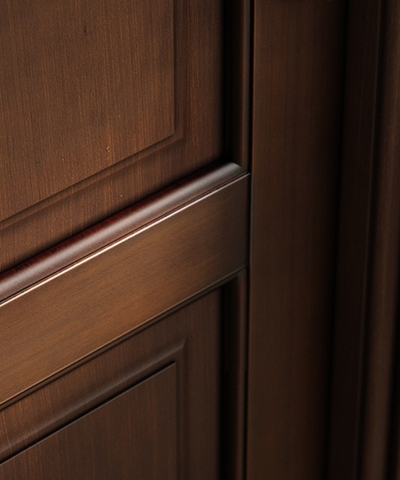 В этой коллекции на филёнках вручную создается геометрический узор. Также для дополнения образа резьба повторяется на капителе.