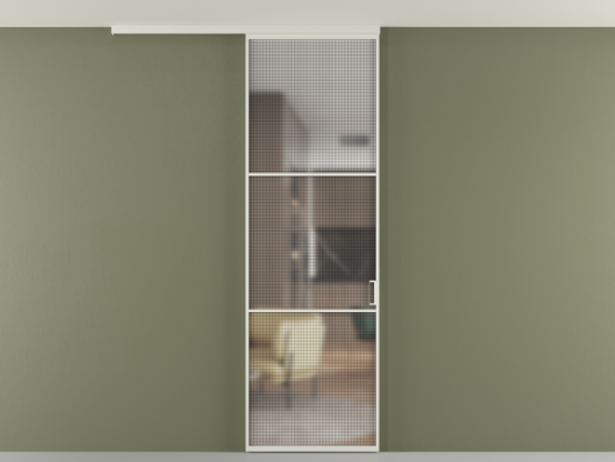 Во всех алюминиевых перегородках, независимо от типа установки, используется компланарный раздвижной механизм, благодаря которому декоративная крышка и полотно находятся в одной плоскости.