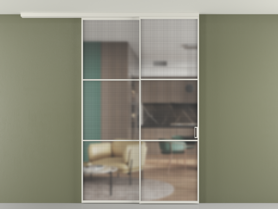 Дополнительно на раздвижную двустворчатую перегородку вдоль стены и четырёхстворчатую перегородку внутри проёма с двумя неподвижным полотнами можно установить механизм синхронного открывания — при открывании одной створки, вторая открывается автоматически.