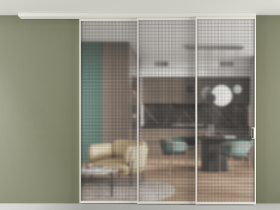 Во всех алюминиевых перегородках, независимо от типа установки, используется компланарный раздвижной механизм, благодаря которому декоративная крышка и полотно находятся в одной плоскости.