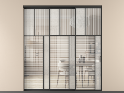 Во всех алюминиевых перегородках, независимо от типа установки, используется компланарный раздвижной механизм, благодаря которому декоративная крышка и полотно находятся в одной плоскости.