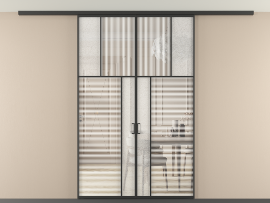Во всех алюминиевых перегородках, независимо от типа установки, используется компланарный раздвижной механизм, благодаря которому декоративная крышка и полотно находятся в одной плоскости.
