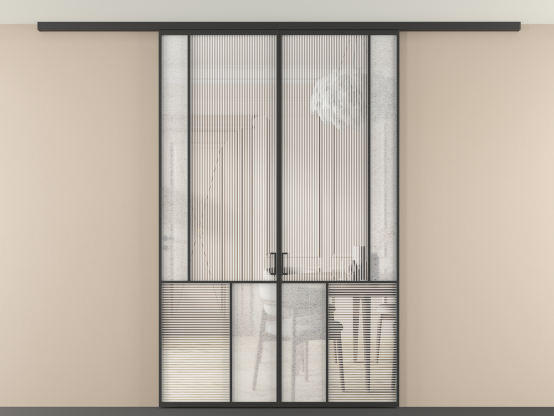 Во всех алюминиевых перегородках, независимо от типа установки, используется компланарный раздвижной механизм, благодаря которому декоративная крышка и полотно находятся в одной плоскости.