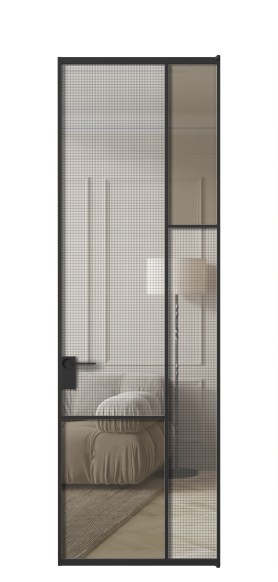 АЛПЛ041.12 Алюминий Черный Декоративное стекло с сеткой "Mesh silver", триплекс, 6 мм + Прозрачное бронзовое стекло, триплекс, 6 мм