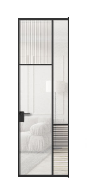 АЛПЛ041.10 Алюминий Черный Рифлёное стекло "Дюна", триплекс, 6 мм + Фактурное стекло "Лёд", триплекс, 6 мм