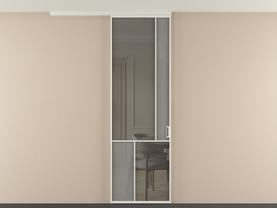Во всех алюминиевых перегородках, независимо от типа установки, используется компланарный раздвижной механизм, благодаря которому декоративная крышка и полотно находятся в одной плоскости.
