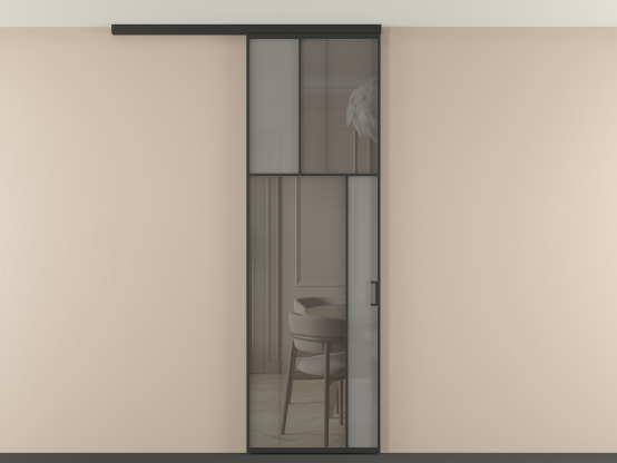 Во всех алюминиевых перегородках, независимо от типа установки, используется компланарный раздвижной механизм, благодаря которому декоративная крышка и полотно находятся в одной плоскости.