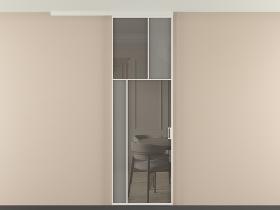 Во всех алюминиевых перегородках, независимо от типа установки, используется компланарный раздвижной механизм, благодаря которому декоративная крышка и полотно находятся в одной плоскости.