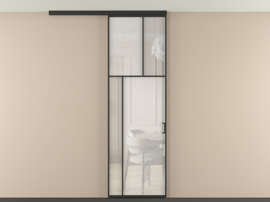 Во всех алюминиевых перегородках, независимо от типа установки, используется компланарный раздвижной механизм, благодаря которому декоративная крышка и полотно находятся в одной плоскости.
