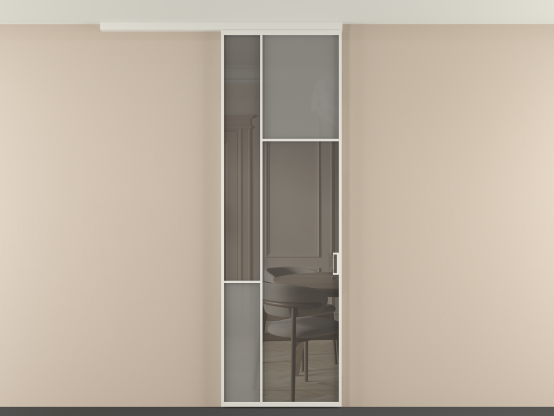 Во всех алюминиевых перегородках, независимо от типа установки, используется компланарный раздвижной механизм, благодаря которому декоративная крышка и полотно находятся в одной плоскости.