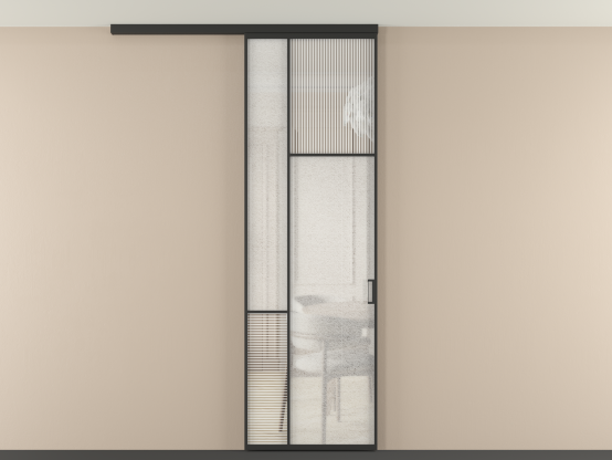 Во всех алюминиевых перегородках, независимо от типа установки, используется компланарный раздвижной механизм, благодаря которому декоративная крышка и полотно находятся в одной плоскости.