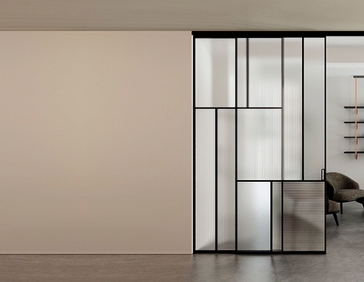 Во всех алюминиевых перегородках, независимо от типа установки, используется компланарный раздвижной механизм, благодаря которому декоративная крышка и полотно находятся в одной плоскости.