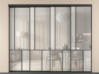 Во всех алюминиевых перегородках, независимо от типа установки, используется компланарный раздвижной механизм, благодаря которому декоративная крышка и полотно находятся в одной плоскости.