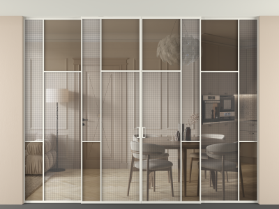 Перегородка Mosaic внутри проёма четырёхстворчатая со скрытым креплением в потолок