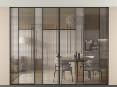Перегородка Mosaic внутри проёма четырёхстворчатая со скрытым креплением в потолок