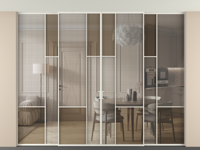 Перегородка Mosaic внутри проёма четырёхстворчатая со скрытым креплением в потолок