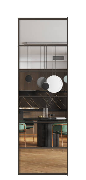 Минималистичный профиль повторяет форму профиля алюминиевых раздвижных перегородок Formato, что позволяет легко сочетать оба решения в одном пространстве.