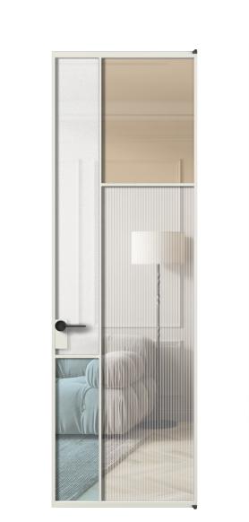 Лаконичный разделительный профиль внутренней раскладки полотна обеспечивает эстетический внешний вид конструкции и идеальную стыковку вставок из стекла.