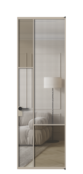 АЛПЛ041.13 Алюминий бисквитный Декоративное стекло с сеткой "Mesh silver", триплекс, 6 мм + Прозрачное бронзовое стекло, триплекс