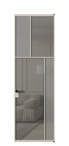 Дверь межкомнатная АЛПЛ041.23 АСБЖ Серый сатин матовое + Серый прозрачное. Цвет Алюминий светло-бежевый. Материал Алюминий в эмали. Коллекция Mosaic. Картинка.