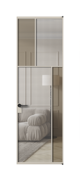 АЛПЛ041.23 Алюминий светло-бежевый Декоративное стекло с сеткой "Mesh silver", триплекс, 6 мм + Прозрачное бронзовое стекло, триплекс