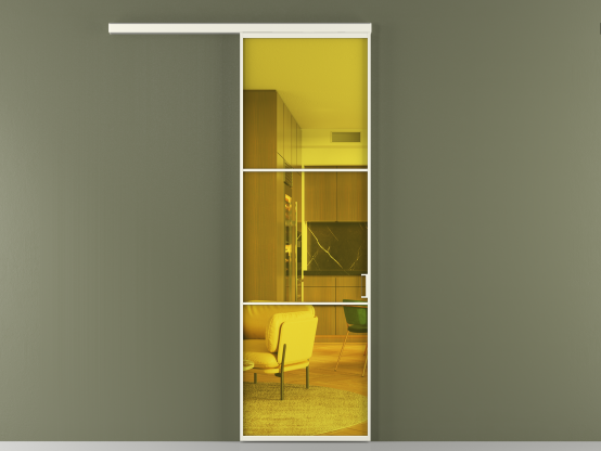 АЛПР 040.03. Алюминий жемчужный Прозрачное жёлтое стекло, триплекс, 6мм