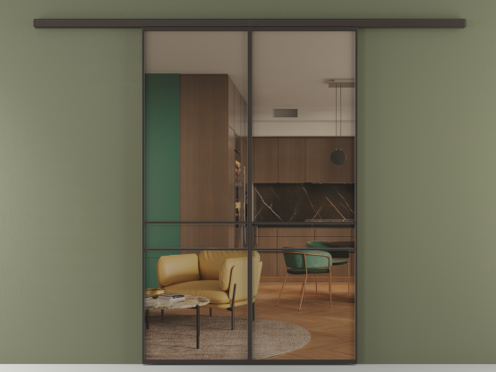 Алюминиевые перегородки имеют единый профиль с алюминиевыми дверьми и легко сочетаются в одном пространстве, не перегружая его. Также их можно комбинировать в интерьере с полотнами из нашего стандартного ассортимента. Помимо этого, система алюминиевых перегородок и дверей координируется со стеновыми панелями Волховец.