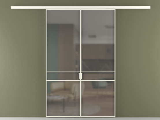 Дополнительно на раздвижную двустворчатую перегородку вдоль стены и четырёхстворчатую перегородку внутри проёма с двумя неподвижным полотнами можно установить механизм синхронного открывания — при открывании одной створки, вторая открывается автоматически.