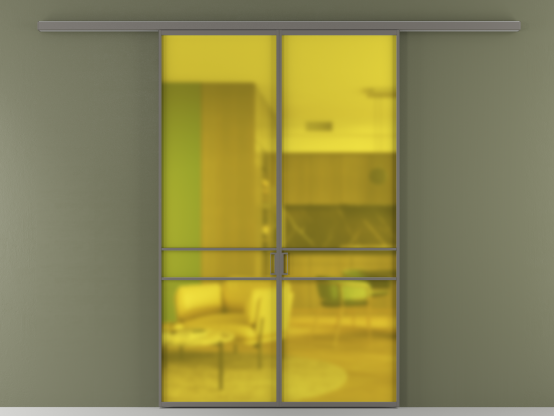 АЛПР 040.02. Алюминий классический серый Сатинированное жёлтое стекло, триплекс, 6мм