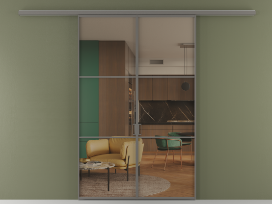 Алюминиевые перегородки имеют единый профиль с алюминиевыми дверьми и легко сочетаются в одном пространстве, не перегружая его. Также их можно комбинировать в интерьере с полотнами из нашего стандартного ассортимента. Помимо этого, система алюминиевых перегородок и дверей координируется со стеновыми панелями Волховец.