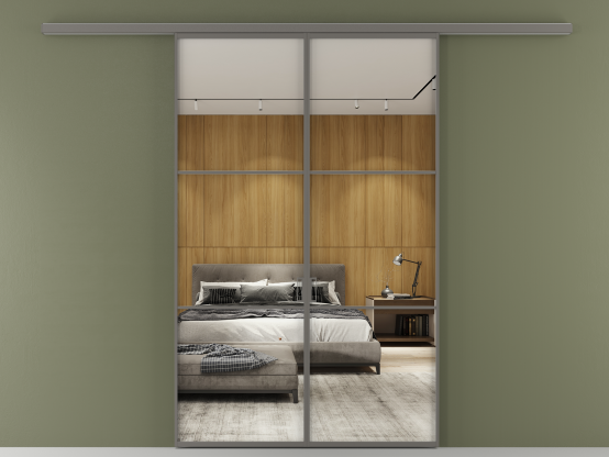 Во всех алюминиевых перегородках, независимо от типа установки, используется компланарный раздвижной механизм, благодаря которому декоративная крышка и полотно находятся в одной плоскости.