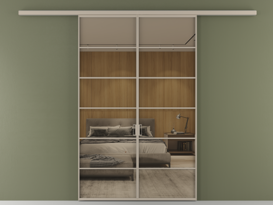 Во всех алюминиевых перегородках, независимо от типа установки, используется компланарный раздвижной механизм, благодаря которому декоративная крышка и полотно находятся в одной плоскости.