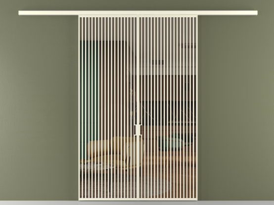 Дополнительно на раздвижную двустворчатую перегородку вдоль стены и четырёхстворчатую перегородку внутри проёма с двумя неподвижным полотнами можно установить механизм синхронного открывания — при открывании одной створки, вторая открывается автоматически.